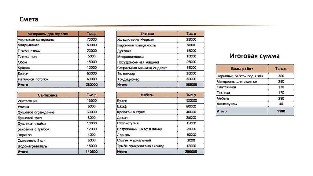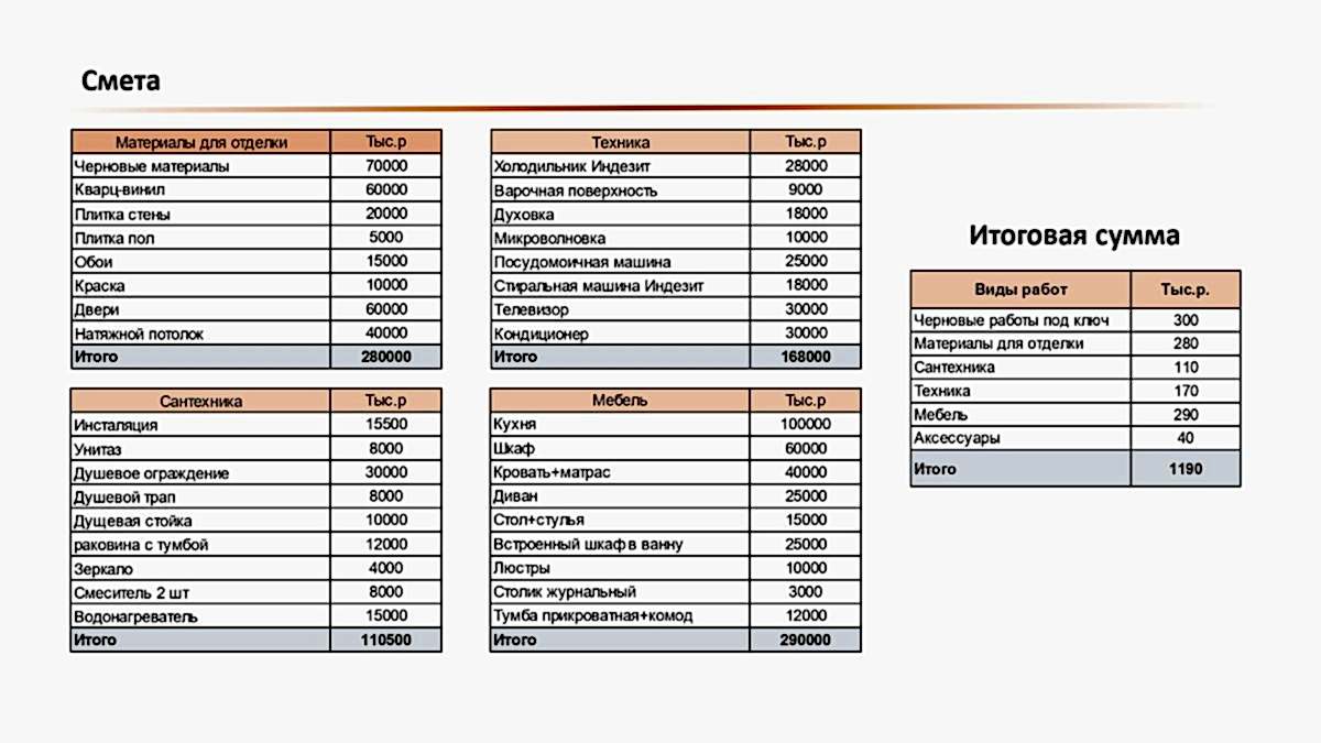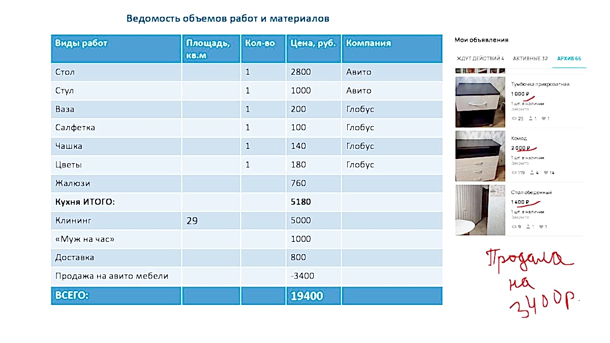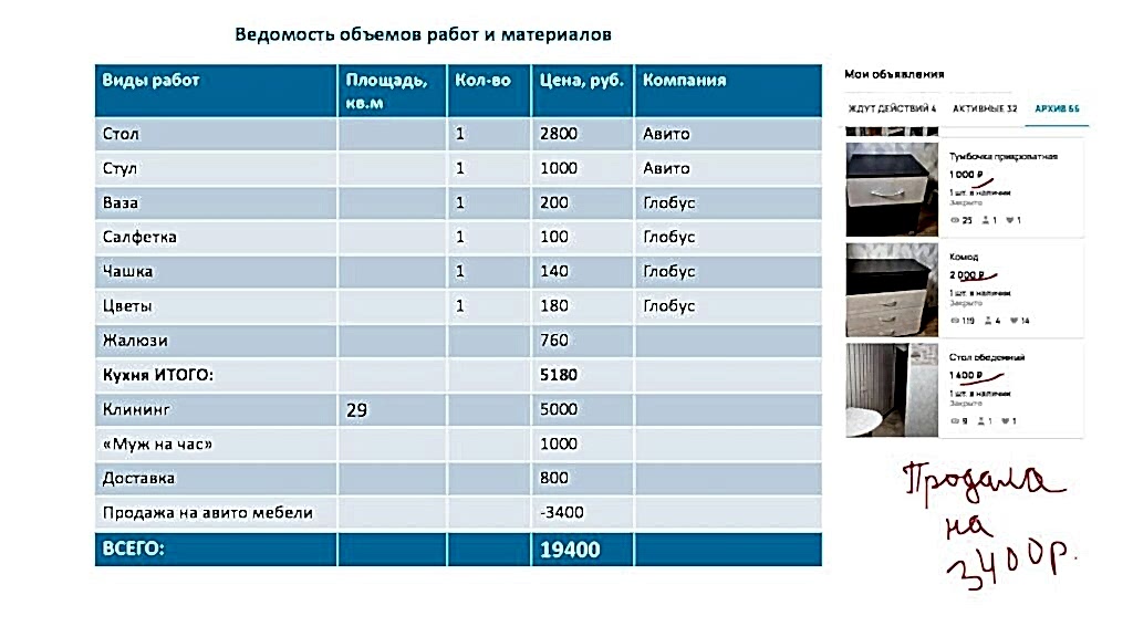 10. Pin-Up сметы и временных затрат на подготовку объекта к продаже.